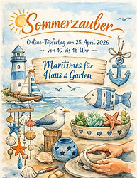 Gemeinsam töpfern wir frische, leichte und sommerliche Keramikstücke, die sich nach Urlaub, Meeresbrise und Sand unter den Füßen anfühlen. Ob für den Garten, den Balkon, die Terrasse oder als sommerliche Deko im Haus – wir gestalten maritime Lieblingsstücke, die sofort Lust auf Sommer und Sonne machen. Wie immer gilt: Du musst nicht den ganzen Tag live dabei sein. Komm dazu, wann es für dich passt. Alles wird vollständig aufgezeichnet und steht dir nach dem Töpfertag zur Verfügung. So kannst du ganz entspannt in deinem eigenen Tempo arbeiten. Es gibt keine komplizierten Vorbereitungen – halte einfach deinen Lieblingston und deine liebsten Modellierhölzer bereit, alles Weitere entsteht gemeinsam Schritt für Schritt. Freu dich auf einen kreativen Tag voller Sommerfeeling, Austausch, Inspiration und ganz viel Ton zwischen den Fingern. Termin: Samstag, den 25.04. 2026 von 10 bis 18 Uhr